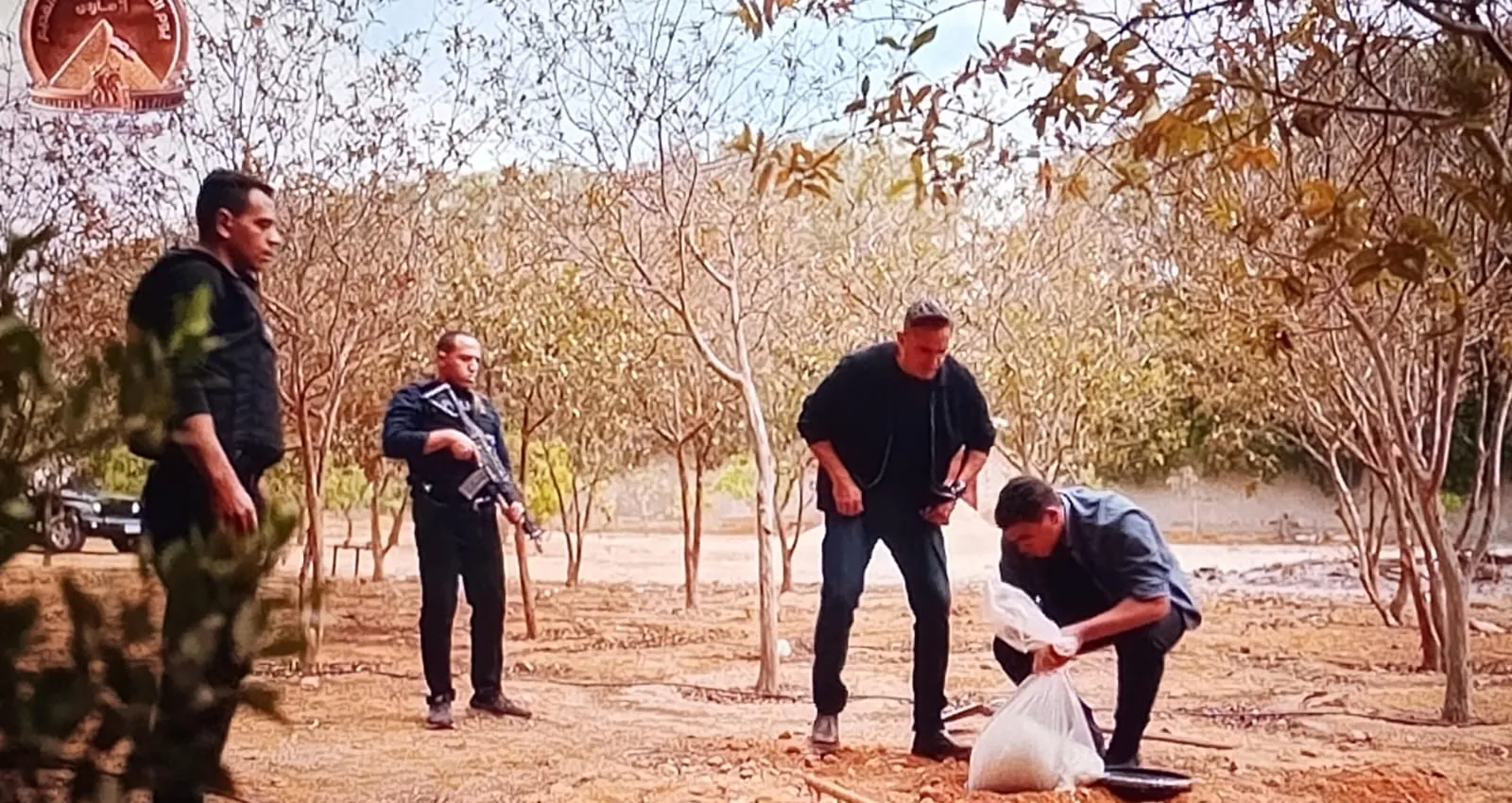 في مشهد مثير، استجوب مراد أحد العناصر المقبوض عليهم للوصول إلى مخازن السلاح السرية. تحت ضغط التحقيق، أرشد العنصر عن أماكن دفن براميل تحت الأشجار وفي نقاط بعيدة داخل المزرعة. بدأت الفرق المختصة عمليات الحفر التي أسفرت عن استخراج “ترسانة الموت”، والتي شملت براميل بلاستيكية مدفونة باحترافية وعبوات ناسفة وأسلاك تفجير معقدة وكميات كبيرة من المواد المتفجرة شديدة الخطورة.