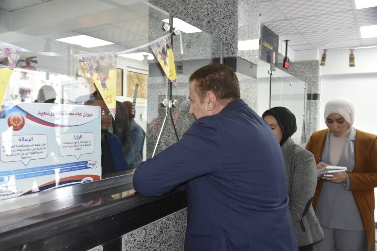 محافظ بورسعيد يتابع سير العمل بمركز تراخيص المحال العامة بحي المناخ