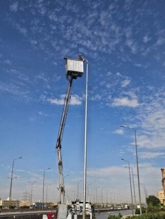 كما تم استبدال وحدات الإضاءة التقليدية بكفاءة عالية بتقنية LED في الطرق العامة، خاصة الطريق الدائري الأوسطي، لضمان استدامة التشغيل وتحسين الرؤية الليلية.