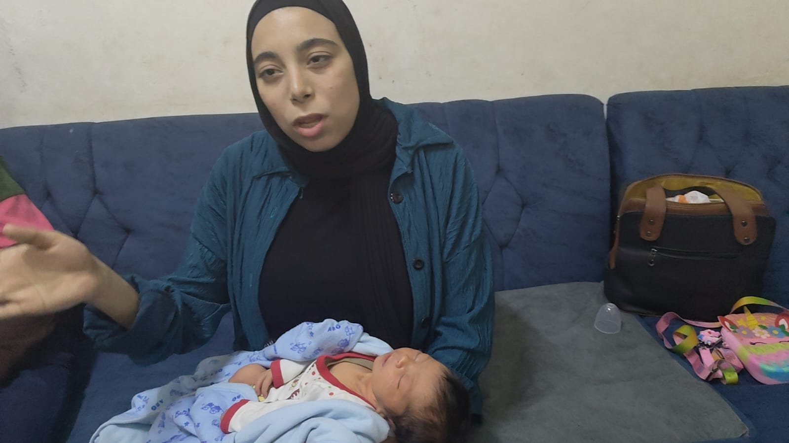 قالت والدة الطفلة إنها شعرت بتعب الولادة صباح الإثنين، وأخبرت زوجها الذي أخذها إلى مستشفى الحسين في القاهرة، حيث أنجبت فيه ابنها الأكبر سابقًا بسبب حالتها الصحية الصعبة بعد إجراء عملية قلب مفتوح.