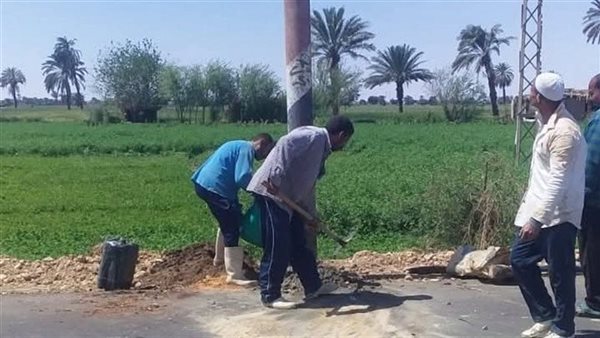 إعادة تركيب أعمدة الإنارة في قرية صفط الشرقية بالمنيا بعد الانتهاء من رصف الطريق