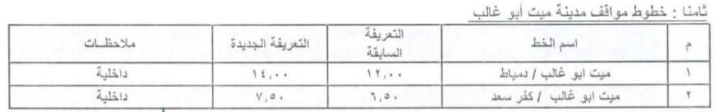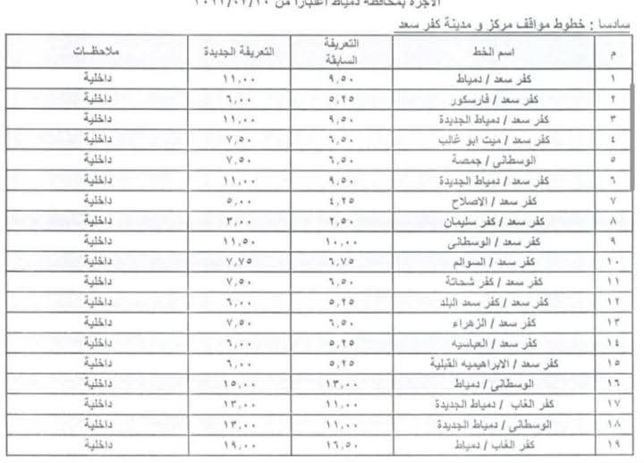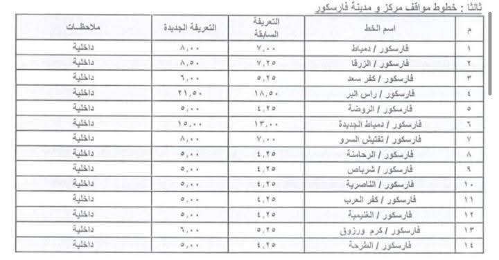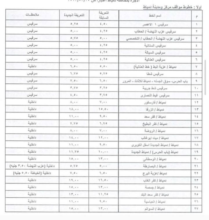 تعديل تعريفة الركوب داخل محافظة دمياط