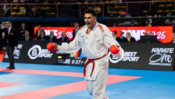 رئيس جامعة القناة يهنئ طالبها بفوزه بفضية بطولة كاراتيه بريمير ليغ