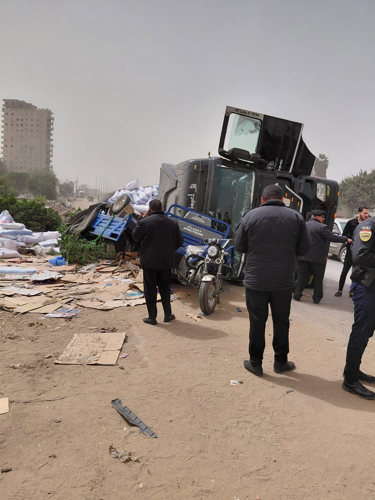 توفي شخص وأصيب 11 آخرون في حادث انقلاب سيارة نقل تريلا محملة بالردوة على تروسكلين على الطريق الزراعي السريع بالقرب من كوبرى الشموت.