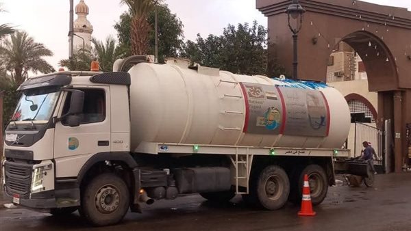 مياه قنا تستخدم سيارات الكسح للتعامل مع تجمعات مياه الأمطار