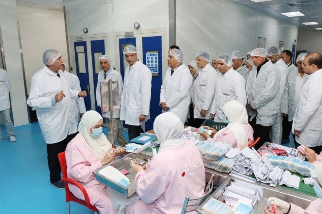 كما اطلع الوزير على مختلف مراحل العملية الإنتاجية بالمصنع والتي تتم وفق اشتراطات تعقيم صارمة ومتوافقة مع متطلبات منظمة الصحة العالمية، بالإضافة إلى منظومة الجودة والرقابة التي تعتمد على عدة مراحل من الفحص والتأكد من سلامة المنتج قبل انتقاله إلى المرحلة التالية، وتعرف الوزير على أهم الأسواق التصديرية والتحديات التي تواجه المصنعين في القطاع.