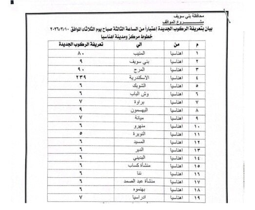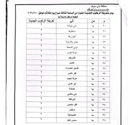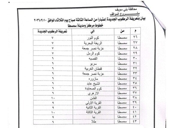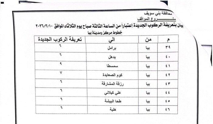 تعريفة الركوب الجديدة في بني سويف