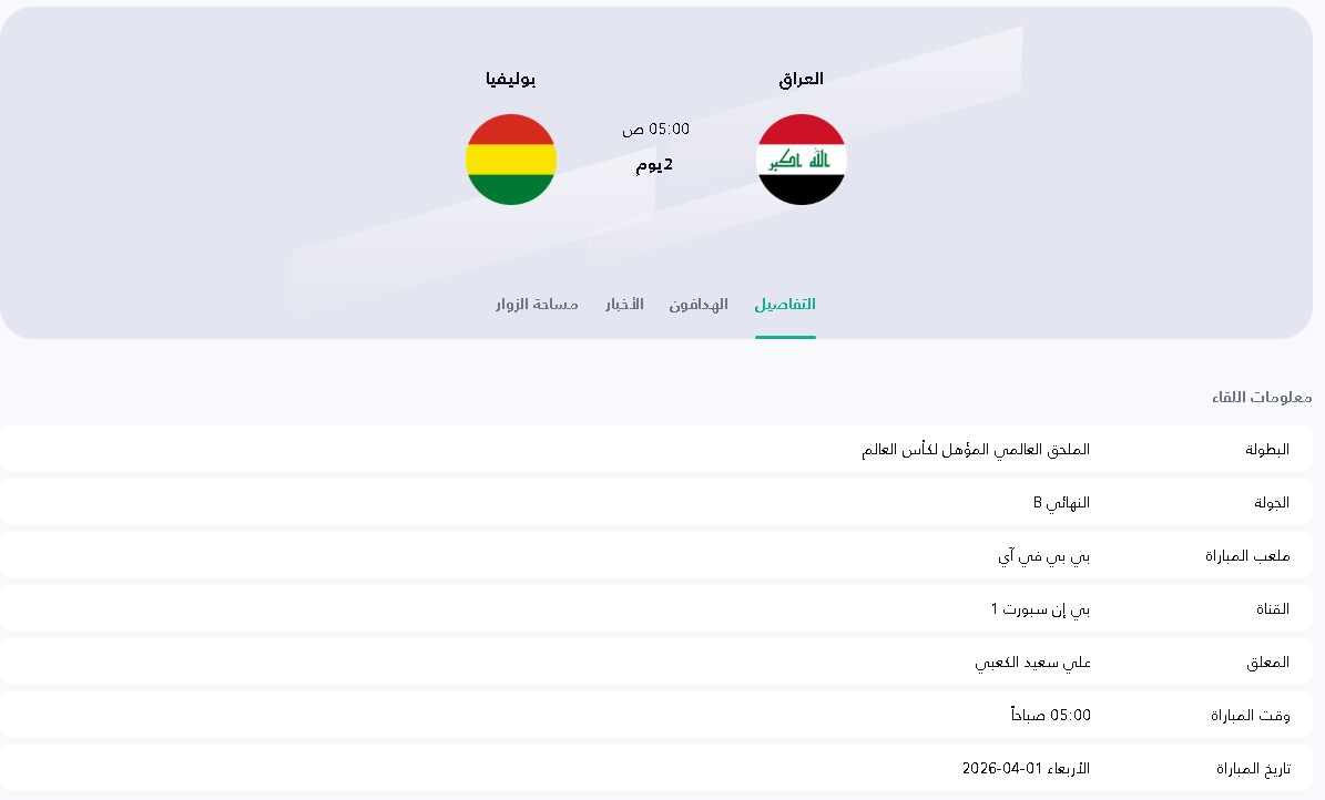 بث مباراة العراق وبوليفيا في الملحق العالمي