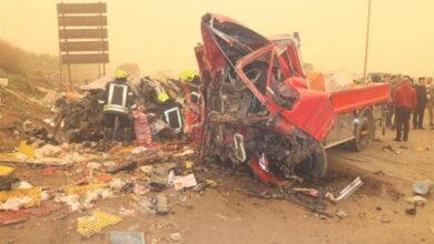 مصرع ثمانية عمال وإصابة أربعة آخرين في حادث تصادم بطريق السادات بالمنوفية