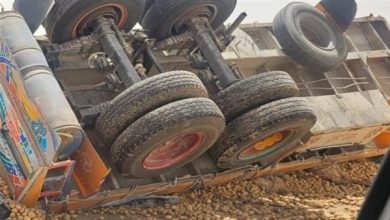 انقلاب شاحنة محملة بستين طنًا من البطاطس على طريق منفلوط في الوادي الجديد