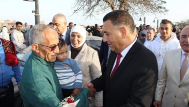محافظ القليوبية يقدم الورود والهدايا للمواطنين في كورنيش بنها